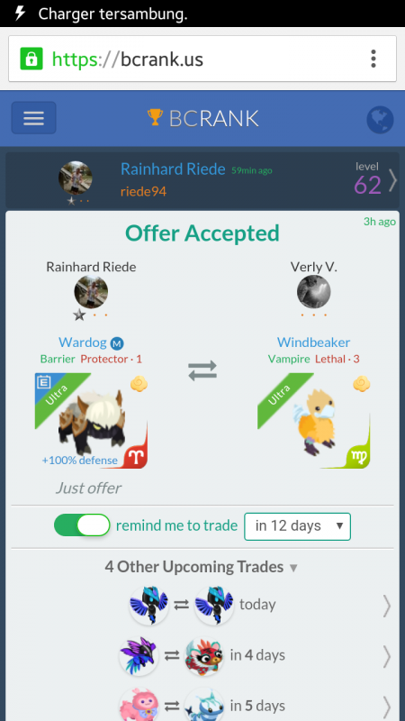 Lf wardog taurus Continue with Facebook clear OR attach pictures Battle Camp Monster Trading Marketplace Trade Details ★★★ Francisco López 7y ago flb00d L70 Vamos 312 9y ago Offer Accepted Francisco López ★ ★ ★ Wardog Barrier Protector · 1 +100% defense M Karina-Cüneyt Dabar ★ ★ ★ Fenroc Vampire+ Lethal · 1 Lf wardog taurus for your 2 wardogs... 4 comments ★★★ Cristian Mabellini if i can get a wardog taurus barr Prot. will u trade ? 9y ago · translate ★★★ Cristian Mabellini hi, i will get a wardog taurus https://bcrank.us/trade/?id=2242537 . do u want trade ? 9y ago · translate ★★ · Verly C. Can change zod , I give + energized max or super R rogue 9y ago · translate ★★★ Karina-Cüneyt Dabar for your 2 wardogs... Fenroc Vampire+ Lethal · 1 offer accepted · 9y ago · translate You must login to offer a trade. Related #battlecamp, #mobile, #mmo, #pvp PvP - Grapes1982 vs Echua8 Another awesome pair of leaf teams titans throw down, Grapes1982 and Echua8. Check out their intense side by side match. #battlecamp, #pvp, #team, #mobile, #mmo PvP - DShep420 vs Chanco21 - 2nd match Part Two of Dshep420 and Chanco21’s Rainbow Specials PvP. Observe how the balance of healing and hitting can make or break a heated battle. #battlecamp, #mobile, #mmo, #pvp Carlos Grapes vs mic1989 Watch PvP Warlord Carlos Grapes against a team of legendaries... what do you think will happen? ;) Check out Carlos's PvP Profile on Battle Camp Bible #battlecamp, #pvp, #team, #mobile, #mmo PvP - Dshep420 vs Chanco21 Two seasoned Rainbow PvPers slug it out in one of the preliminary rounds of the Rainbow Specials Tournament. Watch how each player make massive combos to knock each other out. #battlecamp, #pvp, #team, #mobile, #mmo PvP - Grapes vs. dev mythic team When all epic and legendary teams die in 10 sec, an ultra team showed some fight... #battlecamp, #pvp, #team, #mobile, #mmo PvP - Broyalty vs. MiaJane Watch Broyalty's wind team vs. MiaJane's rock team. Broyalty has a 1530 PvP rating with a 4:1 win to loss ratio! scroll to top