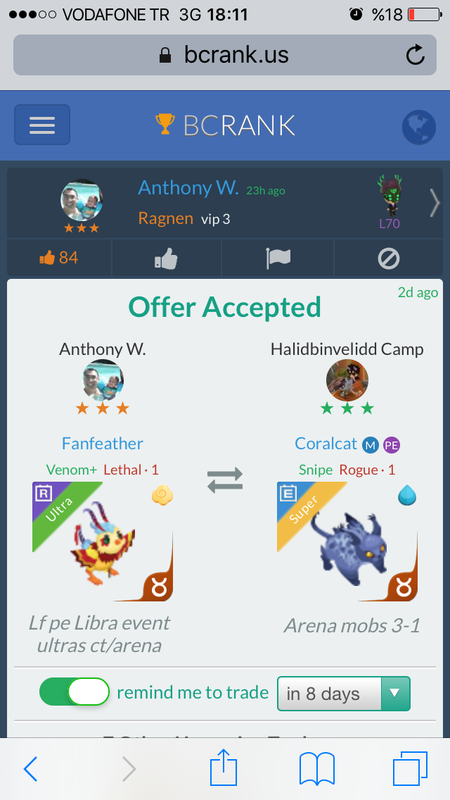 Epic water Aquarius. Continue with Facebook clear OR attach pictures Battle Camp Monster Trading Marketplace Trade Details ★★ · Ramon Cush 8y ago CushKamikaze vip 1 L61 Toc toc 47 9y ago Offer Accepted Ramon Cush ★ ★ · Adorabear Drain+ Rogue · 1 Halidbinvelidd Camp ★ ★ ★ Adorabear Drain+ Rogue · 2 Epic water Aquarius. 23 comments ★★★ Gavin Willis Please help me out bro Adorabear Drain+ Rogue · 1 declined · 9y ago · translate ★★★ Halidbinvelidd Camp 1/1/0 Nightsprite Snipe+ Rogue · 3 declined · 9y ago · translate ★★★ Halidbinvelidd Camp Bro ? 9y ago · translate ★★★ Gavin Willis Adorabear Drain+ Rogue · 1 declined · 9y ago ★★ · Ramon Cush Water sorry :/ 9y ago · translate ★★★ Halidbinvelidd Camp Bro please help me change zodiac Adorabear Drain+ Rogue · 1 declined · 9y ago · translate ★★★ Halidbinvelidd Camp I can maxed please 9y ago · translate ★★★ Halidbinvelidd Camp And ı have 9y ago · translate ★★★ Halidbinvelidd Camp :) Coralcat Snipe Rogue · 1 MPE declined · 9y ago · translate ★★★ Halidbinvelidd Camp Bro ? 9y ago · translate ★★ · Ramon Cush ? 9y ago · translate ★★★ Halidbinvelidd Camp Fb message see please 9y ago · translate ★★ · Ramon Cush 2:1 ? 9y ago · translate ★★ · Ramon Cush Two epics? 9y ago · translate ★★ · Kevin Sebban I can add 1 ultra r rogue for zod swap ? Adorabear Drain+ Rogue · 1 9y ago · translate ★★ · Ramon Cush Photo? 9y ago · translate ★★★ Halidbinvelidd Camp R point 3/0/0 please zod change bro Adorabear Drain+ Rogue · 2 declined · 9y ago · translate ★★ · Kevin Sebban Photo of my ultra ? I wait 3 romousse of this event 9y ago · translate ★★ · Kevin Sebban .... i can add more ultra if is just that.... 9y ago · translate ★★ · Ramon Cush Photo ultra ;) 9y ago · translate ★★★ Halidbinvelidd Camp And 9y ago · translate ★★★ Halidbinvelidd Camp Adorabear Drain+ Rogue · 2 offer accepted · 9y ago ★★★ Halidbinvelidd Camp 2-1 fan and adobe 9y ago · translate You must login to offer a trade. Related #battlecamp, #mobile, #mmo, #pvp PvP - Grapes1982 vs Echua8 Another awesome pair of leaf teams titans throw down, Grapes1982 and Echua8. Check out their intense side by side match. #battlecamp, #pvp, #team, #mobile, #mmo PvP - DShep420 vs Chanco21 - 2nd match Part Two of Dshep420 and Chanco21’s Rainbow Specials PvP. Observe how the balance of healing and hitting can make or break a heated battle. #battlecamp, #mobile, #mmo, #pvp Carlos Grapes vs mic1989 Watch PvP Warlord Carlos Grapes against a team of legendaries... what do you think will happen? ;) Check out Carlos's PvP Profile on Battle Camp Bible #battlecamp, #pvp, #team, #mobile, #mmo PvP - Dshep420 vs Chanco21 Two seasoned Rainbow PvPers slug it out in one of the preliminary rounds of the Rainbow Specials Tournament. Watch how each player make massive combos to knock each other out. #battlecamp, #pvp, #team, #mobile, #mmo PvP - Grapes vs. dev mythic team When all epic and legendary teams die in 10 sec, an ultra team showed some fight... #battlecamp, #pvp, #team, #mobile, #mmo PvP - Broyalty vs. MiaJane Watch Broyalty's wind team vs. MiaJane's rock team. Broyalty has a 1530 PvP rating with a 4:1 win to loss ratio! scroll to top