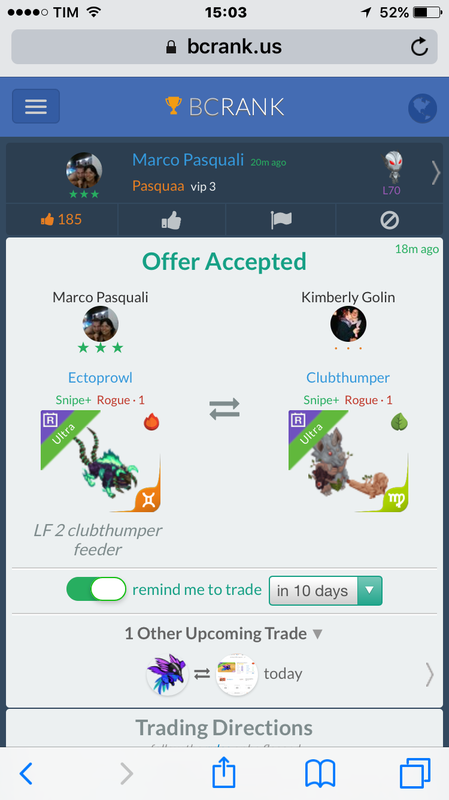 Lf same in gemini Continue with Facebook clear OR attach pictures Battle Camp Monster Trading Marketplace Trade Details ★★★ Wendy Renea 8y ago WendyRenea vip 5 L70 60 9y ago Offer Accepted Wendy Renea ★ ★ ★ Ectoprowl Snipe+ Rogue · 1 James Bey ★ ★ ★ Ectoprowl Snipe+ Rogue · 1 Lf same in gemini 4 comments ★ · · Kimberly Golin Hi i will have this mob in gemini in12 day. For you it s ok? 9y ago · translate ★ · · Kimberly Golin declined · 9y ago ★ · · Kimberly Golin Why?? It s gemini i will have it in 9 days 9y ago · translate ★★★ James Bey Ectoprowl Snipe+ Rogue · 1 offer accepted · 9y ago You must login to offer a trade. Related #battlecamp, #mobile, #mmo, #pvp PvP - Grapes1982 vs Echua8 Another awesome pair of leaf teams titans throw down, Grapes1982 and Echua8. Check out their intense side by side match. #battlecamp, #pvp, #team, #mobile, #mmo PvP - DShep420 vs Chanco21 - 2nd match Part Two of Dshep420 and Chanco21’s Rainbow Specials PvP. Observe how the balance of healing and hitting can make or break a heated battle. #battlecamp, #mobile, #mmo, #pvp Carlos Grapes vs mic1989 Watch PvP Warlord Carlos Grapes against a team of legendaries... what do you think will happen? ;) Check out Carlos's PvP Profile on Battle Camp Bible #battlecamp, #pvp, #team, #mobile, #mmo PvP - Dshep420 vs Chanco21 Two seasoned Rainbow PvPers slug it out in one of the preliminary rounds of the Rainbow Specials Tournament. Watch how each player make massive combos to knock each other out. #battlecamp, #pvp, #team, #mobile, #mmo PvP - Grapes vs. dev mythic team When all epic and legendary teams die in 10 sec, an ultra team showed some fight... #battlecamp, #pvp, #team, #mobile, #mmo PvP - Broyalty vs. MiaJane Watch Broyalty's wind team vs. MiaJane's rock team. Broyalty has a 1530 PvP rating with a 4:1 win to loss ratio! scroll to top