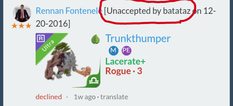 Lf club waterbane libra + feed Continue with Facebook clear OR attach pictures Battle Camp Monster Trading Marketplace Trade Details ★★★ Cristian Rivera 1w ago cr7one L70 CHILE <3 113 8y ago Offer Accepted Cristian Rivera ★ ★ ★ Vulpesta Toxic+ Rogue · 4 MPE Rennan Fontenele ★ ★ ★ Trunkthumper Lacerate+ Rogue · 3 MPE Lf club waterbane libra + feed 11 comments ★ · · Mamarcus Ma declined · 9y ago ★★★ Rennan Fontenele Greenfly Waterbane+ Rogue · 3 MPE declined · 8y ago ★★★ Cristian Rivera Mercy and feed? 8y ago · translate ★★★ Mercy C. Ah! Im sorry! I missed that part of your post! Ill delete my offer. Sorry! 8y ago · translate ★★ · KW Eren K. Heru-Grrr Snipe+ Rogue · 5 MPE declined · 8y ago ★★★ Rennan Fontenele [Unaccepted by batataz on 12-20-2016] Trunkthumper Lacerate+ Rogue · 3 MPE declined · 8y ago · translate ★★★ Lablodor Lablodor 2/1 8y ago · translate ★★★ Rennan Fontenele Hey man, you cancel the trade? 8y ago · translate ★★★ Cristian Rivera 8y ago ★★★ Rennan Fontenele Lol, i no cancel 😱 8y ago · translate ★★★ Rennan Fontenele Trunkthumper Lacerate+ Rogue · 3 MPE offer accepted · 8y ago You must login to offer a trade. Related #battlecamp, #mobile, #mmo, #pvp PvP - Grapes1982 vs Echua8 Another awesome pair of leaf teams titans throw down, Grapes1982 and Echua8. Check out their intense side by side match. #battlecamp, #pvp, #team, #mobile, #mmo PvP - DShep420 vs Chanco21 - 2nd match Part Two of Dshep420 and Chanco21’s Rainbow Specials PvP. Observe how the balance of healing and hitting can make or break a heated battle. #battlecamp, #mobile, #mmo, #pvp Carlos Grapes vs mic1989 Watch PvP Warlord Carlos Grapes against a team of legendaries... what do you think will happen? ;) Check out Carlos's PvP Profile on Battle Camp Bible #battlecamp, #pvp, #team, #mobile, #mmo PvP - Dshep420 vs Chanco21 Two seasoned Rainbow PvPers slug it out in one of the preliminary rounds of the Rainbow Specials Tournament. Watch how each player make massive combos to knock each other out. #battlecamp, #pvp, #team, #mobile, #mmo PvP - Grapes vs. dev mythic team When all epic and legendary teams die in 10 sec, an ultra team showed some fight... #battlecamp, #pvp, #team, #mobile, #mmo PvP - Broyalty vs. MiaJane Watch Broyalty's wind team vs. MiaJane's rock team. Broyalty has a 1530 PvP rating with a 4:1 win to loss ratio! scroll to top