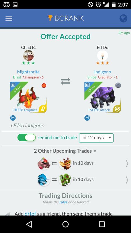 mightsprite leo same tier Continue with Facebook clear OR attach pictures Battle Camp Monster Trading Marketplace Trade Details ★★★ Hector Cardenas 3y ago krdenas87 L70 thhyi9 174 1 flag 8y ago Offer Accepted Hector Cardenas ★ ★ ★ Fierodyssey Snipe Gladiator · 1 +900% attack M Luis Danilo Pineda Salcedo ★ ★ · mightsprite leo same tier 21 comments ★★ · Punkalcious Hankin +900% attack Indigono Snipe Knight · 1 M declined · 8y ago ★★★ Jonathan Rosario +100% trophies Mightsprite Blast Mender · 1 declined · 8y ago ★★★ Jonathan Rosario 2:1 declined · 8y ago · translate ★★★ Sascha W. +900% attack Leazard Snipe Champion · 1 8y ago ★★★ Jonathan Rosario +100% trophies Mightsprite Blast Mender · 1 declined · 8y ago ★★★ Jonathan Rosario Glowfeather Snipe Cavalry · 1 declined · 8y ago ★★★ Jonathan Rosario 2:1 8y ago · translate ★★★ Hector Cardenas sorry bro i want same tier 8y ago · translate ★★★ Jose D. [Unaccepted by eduar262626 on 07-10-2017] declined · 8y ago · translate ★★★ Hector Cardenas Podria intentarlo pero ahorita no tengo monstruos con esa pasiva 8y ago · translate ★★★ Hector Cardenas Igual podria darte alguna otra cosa por la diferencia de pasiva en caso q no me salgan 8y ago · translate ★★★ Jose D. Que me puedes dar bro? 8y ago · translate ★★★ Hector Cardenas No se man checa mi pagina tal vez un super de dominio 8y ago · translate ★★★ Jose D. Seature piscis bro 8y ago · translate ★★ · Luis Danilo Pineda Salcedo offer accepted · 8y ago ★★★ Hector Cardenas excelente oferta amigo dejame checar por favor 8y ago · translate ★★★ Jose D. Bro ya hice trade por el migh. Lo sento 8y ago · translate ★★ · Luis Danilo Pineda Salcedo Bro si quieres te aumento un super de dom cualquier elemento menos fuego 8y ago · translate ★★★ Hector Cardenas el problema bro q lo ocupo leo pero si lo pones al max si lo acepto y ya despues busco el cambio 8y ago · translate ★★ · Luis Danilo Pineda Salcedo Claro bro no hay problema 😁👍 8y ago · translate ★★★ Hector Cardenas Ok max por max 8y ago · translate You must login to offer a trade. Related #battlecamp, #mobile, #mmo, #pvp PvP - Grapes1982 vs Echua8 Another awesome pair of leaf teams titans throw down, Grapes1982 and Echua8. Check out their intense side by side match. #battlecamp, #pvp, #team, #mobile, #mmo PvP - DShep420 vs Chanco21 - 2nd match Part Two of Dshep420 and Chanco21’s Rainbow Specials PvP. Observe how the balance of healing and hitting can make or break a heated battle. #battlecamp, #mobile, #mmo, #pvp Carlos Grapes vs mic1989 Watch PvP Warlord Carlos Grapes against a team of legendaries... what do you think will happen? ;) Check out Carlos's PvP Profile on Battle Camp Bible #battlecamp, #pvp, #team, #mobile, #mmo PvP - Dshep420 vs Chanco21 Two seasoned Rainbow PvPers slug it out in one of the preliminary rounds of the Rainbow Specials Tournament. Watch how each player make massive combos to knock each other out. #battlecamp, #pvp, #team, #mobile, #mmo PvP - Grapes vs. dev mythic team When all epic and legendary teams die in 10 sec, an ultra team showed some fight... #battlecamp, #pvp, #team, #mobile, #mmo PvP - Broyalty vs. MiaJane Watch Broyalty's wind team vs. MiaJane's rock team. Broyalty has a 1530 PvP rating with a 4:1 win to loss ratio! scroll to top