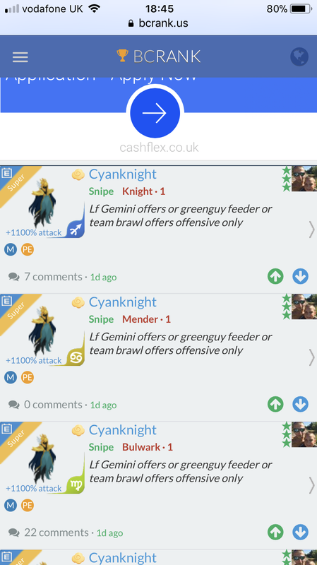 Lf Gemini offers or greenguy feeder or team brawl offers offensive only Continue with Facebook clear OR attach pictures Battle Camp Monster Trading Marketplace Trade Details ★★★ Louis Hayes 1mo ago Louishayes2013 vip 4 L70 MIH let’s go!!! Veteran player. 12yrs+ 117 7y ago Offer Accepted Louis Hayes ★ ★ ★ Cyanknight Snipe Bulwark · 1 +1100% attack MPE Jonathan Fabian S. ★ ★ · RobotySnatcher Lacerate+ Rogue · 1 Lf Gemini offers or greenguy feeder or team brawl offers offensive only 26 comments ★★★ Nasser Saad Clampion E-Swap+ Lethal · 1 declined · 7y ago ★★ · Jonathan Fabian S. RobotySnatcher Lacerate+ Rogue · 1 offer accepted · 7y ago ★★★ Louis Hayes 1 for 1 jonathan? 7y ago · translate ★★ · Jonathan Fabian S. You have another? 7y ago · translate ★★★ Louis Hayes I have 3 more after this one is gone. 7y ago · translate ★★★ Louis Hayes ideally 1 for 1 would be good for me as i only really need the feeders for evo 7y ago · translate ★★ · Jonathan Fabian S. Te sirve este por dos Cyanknigth? 7y ago · translate ★★ · Jonathan Fabian S. De lo contrario uno 7y ago · translate ★★★ Louis Hayes Do you need a certain zodiac or just any? 7y ago · translate ★★★ Louis Hayes I have a t1 if you prefer to take that for your mob? 7y ago · translate ★★★ Louis Hayes You dont need to max or anything just trade as they are :) 7y ago · translate ★★ · Jonathan Fabian S. Necesito en aries...de lo contrarioque cualquiera 7y ago · translate ★★ · Jonathan Fabian S. De lo contrario cualquiera 7y ago · translate ★★★ Louis Hayes Yano what dm ill give you 2 for it. Pick any 2 from my post and post here. I will keep them safe for you 7y ago · translate ★★★ Louis Hayes your mob has equipment right? 7y ago · translate ★★ · Jonathan Fabian S. Seguro? 7y ago · translate ★★ · Jonathan Fabian S. Si claro es recompensa de evento, 7y ago · translate ★★★ Louis Hayes Ok you pick 2 mobs and ill accept your offer. 7y ago · translate ★★★ Louis Hayes I wont be giving the t1 with 2 sordy 7y ago · translate ★★★ Louis Hayes sorry. I will give you 2 but just not the t1. I need a ultra feeder for that one alone 7y ago · translate ★★★ Louis Hayes Pick any 2 out of this 3 and there yours 7y ago · translate ★★ · Jonathan Fabian S. Ok no problem : por el sagitario y por el escorpio 7y ago · translate ★★ · Jonathan Fabian S. Ok? 7y ago · translate ★★ · Jonathan Fabian S. Sorry sorry in virgo 7y ago · translate ★★★ Louis Hayes Yeh thts fine. Just to make sure transate is working correctly you want sagi and virgo? 7y ago · translate ★★★ Louis Hayes Confirm in game pm pls i will accept now :) 7y ago · translate You must login to offer a trade. Related #battlecamp, #mobile, #mmo, #pvp PvP - Grapes1982 vs Echua8 Another awesome pair of leaf teams titans throw down, Grapes1982 and Echua8. Check out their intense side by side match. #battlecamp, #pvp, #team, #mobile, #mmo PvP - DShep420 vs Chanco21 - 2nd match Part Two of Dshep420 and Chanco21’s Rainbow Specials PvP. Observe how the balance of healing and hitting can make or break a heated battle. #battlecamp, #mobile, #mmo, #pvp Carlos Grapes vs mic1989 Watch PvP Warlord Carlos Grapes against a team of legendaries... what do you think will happen? ;) Check out Carlos's PvP Profile on Battle Camp Bible #battlecamp, #pvp, #team, #mobile, #mmo PvP - Dshep420 vs Chanco21 Two seasoned Rainbow PvPers slug it out in one of the preliminary rounds of the Rainbow Specials Tournament. Watch how each player make massive combos to knock each other out. #battlecamp, #pvp, #team, #mobile, #mmo PvP - Grapes vs. dev mythic team When all epic and legendary teams die in 10 sec, an ultra team showed some fight... #battlecamp, #pvp, #team, #mobile, #mmo PvP - Broyalty vs. MiaJane Watch Broyalty's wind team vs. MiaJane's rock team. Broyalty has a 1530 PvP rating with a 4:1 win to loss ratio! scroll to top