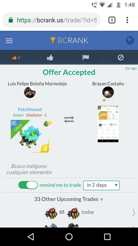 I look oferts Continue with Facebook clear OR attach pictures Battle Camp Monster Trading Marketplace Trade Details ★★ · Jeyder Argenis 3y ago argenismay L70 TEAM FUEGO DOMINION 27 7y ago Offer Accepted Jeyder Argenis ★ ★ · Cottonmob Venom Cleric · 2 M161219 Brayan Castaño ★ ★ · I look oferts 4 comments ★★ · John Snow Creagle Venom Protector · 1 M declined · 7y ago ★★★ Jun Y. 2:1 +900% attack Erodonite Snipe Bruiser · 1 declined · 7y ago · translate ★★★ Jun Y. +900% attack Onyzzard Snipe Shaman · 1 M declined · 7y ago ★★ · Brayan Castaño offer accepted · 7y ago You must login to offer a trade. Related #battlecamp, #mobile, #mmo, #pvp PvP - Grapes1982 vs Echua8 Another awesome pair of leaf teams titans throw down, Grapes1982 and Echua8. Check out their intense side by side match. #battlecamp, #pvp, #team, #mobile, #mmo PvP - DShep420 vs Chanco21 - 2nd match Part Two of Dshep420 and Chanco21’s Rainbow Specials PvP. Observe how the balance of healing and hitting can make or break a heated battle. #battlecamp, #mobile, #mmo, #pvp Carlos Grapes vs mic1989 Watch PvP Warlord Carlos Grapes against a team of legendaries... what do you think will happen? ;) Check out Carlos's PvP Profile on Battle Camp Bible #battlecamp, #pvp, #team, #mobile, #mmo PvP - Dshep420 vs Chanco21 Two seasoned Rainbow PvPers slug it out in one of the preliminary rounds of the Rainbow Specials Tournament. Watch how each player make massive combos to knock each other out. #battlecamp, #pvp, #team, #mobile, #mmo PvP - Grapes vs. dev mythic team When all epic and legendary teams die in 10 sec, an ultra team showed some fight... #battlecamp, #pvp, #team, #mobile, #mmo PvP - Broyalty vs. MiaJane Watch Broyalty's wind team vs. MiaJane's rock team. Broyalty has a 1530 PvP rating with a 4:1 win to loss ratio! scroll to top