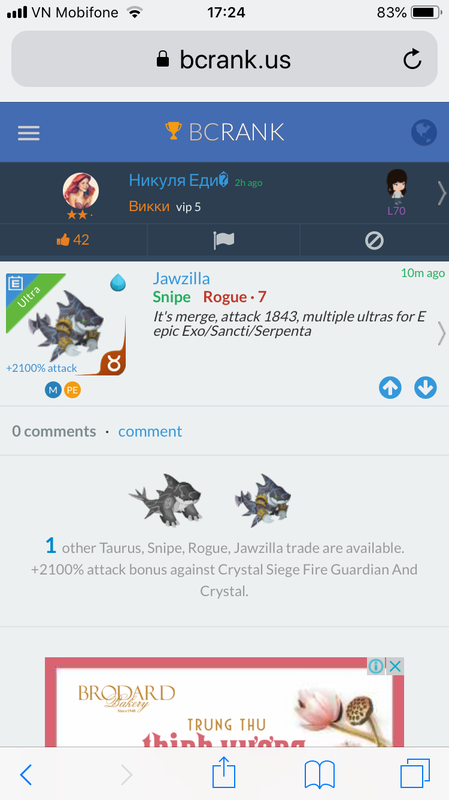 Good offers... Continue with Facebook clear OR attach pictures Battle Camp Monster Trading Marketplace Trade Details ★★★ Long Võ 3y ago Baolong75 L70 1bcgf7 118 6y ago Offer Accepted Long Võ ★ ★ ★ Garishgoyle Snipe Protector · 3 +3000% attack MPE Никуля Единственная ★ ★ ★ Flambodyssey Snipe Rogue · 10 +2100% attack MPE Good offers... Hello! 4 ultra CS, all merge, attack 1843, 4:1 for your offer 25 comments ★★★ Sam L. Fieldbeast Crush+ Cavalry+ · 1 PEEQ declined · 6y ago ★★★ Sam L. Moonwolf E-Swap+ Cavalry+ · 1 PEEQ declined · 6y ago ★★★ Sam L. Meteowolf Crush+ Cavalry+ · 1 EQ declined · 6y ago ★★★ Sam L. 3:1 6y ago · translate ★★★ Sam L. Springdragon Snipe+ Cavalry+ · 1 MPEEQ declined · 6y ago ★★★ Sam L. Gillknight Firebane+ Cavalry+ · 1 PEEQ declined · 6y ago ★★★ Sam L. 2:1? 6y ago · translate ★★★ Alison J. declined · 6y ago ★★★ Alison J. 3:1 Vanillizard Swap Bruiser · 1 declined · 6y ago · translate ★★★ Alison J. MistressPine Crush Cavalry · 1 MPEEQ222 declined · 6y ago ★★★ Sam L. Fieldbeast E-Swap+ Cavalry+ · 1 PEEQ declined · 6y ago ★★★ Sam L. +2100% attack Veloftiraptor Snipe Cavalry · 1 PE declined · 6y ago ★★★ Sam L. +2100% attack Veloftiraptor Snipe Bruiser · 1 PE declined · 6y ago ★★★ Sam L. +2100% attack Veloftiraptor Snipe Champion · 1 MPE declined · 6y ago ★★★ Sam L. +2100% attack Veloftiraptor Snipe Champion · 1 MPE declined · 6y ago ★★★ Sam L. 5:1 epic in first day trade 6y ago · translate ★★★ Manuel M. Swamphound Snipe Priest · 1 M declined · 6y ago ★★★ Никуля Единственная Hello! 4 ultra CS, all merge, attack 1843, 4:1 for your offer +2100% attack Flambodyssey Snipe Rogue · 10 MPE offer accepted · 6y ago · translate ★★★ Никуля Единственная merge 1843 +2100% attack Flambodyssey Snipe Rogue · 9 MPE 6y ago · translate ★★★ Никуля Единственная merge 1843 +2100% attack Flambodyssey Snipe Champion · 7 MPE 6y ago · translate ★★★ Никуля Единственная merge 1843 +2100% attack Flambodyssey Snipe Cavalry · 9 MPE 6y ago · translate ★★★ Никуля Единственная What do you think of my offer? Will you accept it? 6y ago · translate ★★★ Long Võ Hi bro!something.ok 6y ago · translate ★★★ Никуля Единственная Hi, 5:1, right? +2100% attack Jawzilla Snipe Rogue · 7 MPE 6y ago · translate ★★★ Никуля Единственная It's merge too, attack 1843 6y ago · translate You must login to offer a trade. Related #battlecamp, #mobile, #mmo, #pvp PvP - Grapes1982 vs Echua8 Another awesome pair of leaf teams titans throw down, Grapes1982 and Echua8. Check out their intense side by side match. #battlecamp, #pvp, #team, #mobile, #mmo PvP - DShep420 vs Chanco21 - 2nd match Part Two of Dshep420 and Chanco21’s Rainbow Specials PvP. Observe how the balance of healing and hitting can make or break a heated battle. #battlecamp, #mobile, #mmo, #pvp Carlos Grapes vs mic1989 Watch PvP Warlord Carlos Grapes against a team of legendaries... what do you think will happen? ;) Check out Carlos's PvP Profile on Battle Camp Bible #battlecamp, #pvp, #team, #mobile, #mmo PvP - Dshep420 vs Chanco21 Two seasoned Rainbow PvPers slug it out in one of the preliminary rounds of the Rainbow Specials Tournament. Watch how each player make massive combos to knock each other out. #battlecamp, #pvp, #team, #mobile, #mmo PvP - Grapes vs. dev mythic team When all epic and legendary teams die in 10 sec, an ultra team showed some fight... #battlecamp, #pvp, #team, #mobile, #mmo PvP - Broyalty vs. MiaJane Watch Broyalty's wind team vs. MiaJane's rock team. Broyalty has a 1530 PvP rating with a 4:1 win to loss ratio! scroll to top