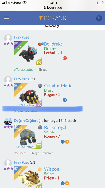 LF Offers in pisces Continue with Facebook clear OR attach pictures Battle Camp Monster Trading Marketplace Trade Details ★★ · Mario Ocampo Moreno 4y ago Pulguex L70 5xcafx 43 5y ago Offer Accepted Mario Ocampo Moreno ★ ★ · Grind-o-Matic Blast Cavalry · 1 +50% trophies Jesús Hernandez ★ ★ ★ LF Offers in pisces Ese fuego ultra esta bien ? 10 comments ★★ · Diego Perez Ultras R? 5y ago · translate ★★ · Diego Perez +500% attack Nightspur Snipe Lethal · 1 declined · 5y ago ★★ · Diego Perez Aquoyle Crush+ Cavalry+ · 3 EQ declined · 5y ago ★★ · Mario Ocampo Moreno Diego en piscis por favor 5y ago · translate ★★★ BrandOn Gasca +50% trophies Grind-o-Matic Blast Cavalry · 1 declined · 5y ago ★★★ Zhang J. +500% attack Fennekit Venom Rogue · 1 M declined · 5y ago ★★★ Jesús Hernandez Voy a cambiar uno en piscis y te agrego otro de BR 2:1 declined · 5y ago · translate ★★★ Jesús Hernandez O te puedo agravar este en vez del de BR declined · 5y ago · translate ★★★ Jesús Hernandez Ese fuego ultra esta bien ? offer accepted · 5y ago · translate ★★★ Ale V. +1100% attack Wispon Snipe Cavalry · 8 MPE 5y ago You must login to offer a trade. Related #battlecamp, #mobile, #mmo, #pvp PvP - Grapes1982 vs Echua8 Another awesome pair of leaf teams titans throw down, Grapes1982 and Echua8. Check out their intense side by side match. #battlecamp, #pvp, #team, #mobile, #mmo PvP - DShep420 vs Chanco21 - 2nd match Part Two of Dshep420 and Chanco21’s Rainbow Specials PvP. Observe how the balance of healing and hitting can make or break a heated battle. #battlecamp, #mobile, #mmo, #pvp Carlos Grapes vs mic1989 Watch PvP Warlord Carlos Grapes against a team of legendaries... what do you think will happen? ;) Check out Carlos's PvP Profile on Battle Camp Bible #battlecamp, #pvp, #team, #mobile, #mmo PvP - Dshep420 vs Chanco21 Two seasoned Rainbow PvPers slug it out in one of the preliminary rounds of the Rainbow Specials Tournament. Watch how each player make massive combos to knock each other out. #battlecamp, #pvp, #team, #mobile, #mmo PvP - Grapes vs. dev mythic team When all epic and legendary teams die in 10 sec, an ultra team showed some fight... #battlecamp, #pvp, #team, #mobile, #mmo PvP - Broyalty vs. MiaJane Watch Broyalty's wind team vs. MiaJane's rock team. Broyalty has a 1530 PvP rating with a 4:1 win to loss ratio! scroll to top