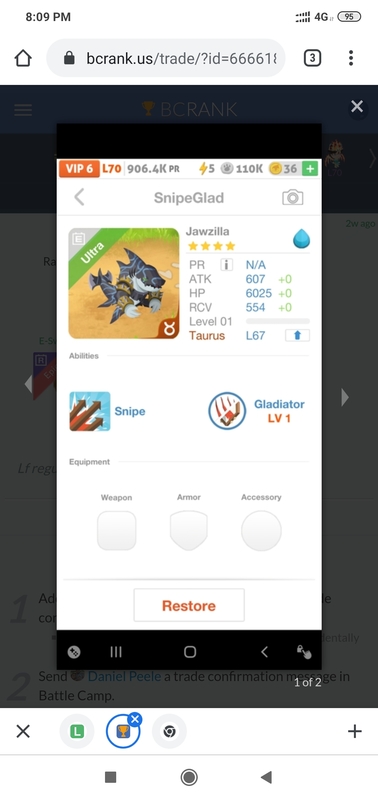 Lf jawzilla sagittarius Or indigordo aquarius. Continue with Facebook clear OR attach pictures Battle Camp Monster Trading Marketplace Trade Details ★★★ Nick B. 4y ago Vampireboy2 L70 battle camp is My favourite game. 56 5y ago Offer Accepted Nick B. ★ ★ ★ Veloftiraptor Snipe Gladiator · 3 +2100% attack MPE Ravi Kushwaha ★ ★ ★ Lf jawzilla sagittarius Or indigordo aquarius. 18 comments ★★★ Mees G. Fieldhound Snipe Shaman · 3 MPE declined · 5y ago ★★★ Ravi Kushwaha 5y ago ★★★ Nick B. @Ravi 5y ago · translate ★★★ Nick B. Is your mob 100% Perfect? 5y ago · translate ★★★ Ravi Kushwaha [Unaccepted by Vampireboy2 on 11-21-2020] declined · 5y ago · translate ★★★ Nick B. I mean it's 100% perfect or not? 5y ago · translate ★★★ Ravi Kushwaha Yes this mob perfection is 100%... 5y ago · translate ★★★ Ravi Kushwaha offer accepted · 5y ago ★★★ Nick B. Alright can you passive up and maxed it? 5y ago · translate ★★★ Nick B. 100% 5y ago · translate ★★★ Ravi Kushwaha I can max it but can't passive up because i don't have feed mob in gladiator.. 5y ago · translate ★★★ Nick B. Can you add some energized? 5y ago · translate ★★★ Ravi Kushwaha I can add only 1 energized .. 5y ago · translate ★★★ Nick B. Sorry bro, please confirm our trades 5y ago · translate ★★★ Nick B. And post your mob with maxed and energized. 5y ago · translate ★★★ Ravi Kushwaha I send message you in game.. 5y ago · translate ★★★ Ravi Kushwaha I will give you both (max+1energized). 5y ago · translate ★★★ Nick B. Ok bro 5y ago · translate You must login to offer a trade. Related #battlecamp, #mobile, #mmo, #pvp PvP - Grapes1982 vs Echua8 Another awesome pair of leaf teams titans throw down, Grapes1982 and Echua8. Check out their intense side by side match. #battlecamp, #pvp, #team, #mobile, #mmo PvP - DShep420 vs Chanco21 - 2nd match Part Two of Dshep420 and Chanco21’s Rainbow Specials PvP. Observe how the balance of healing and hitting can make or break a heated battle. #battlecamp, #mobile, #mmo, #pvp Carlos Grapes vs mic1989 Watch PvP Warlord Carlos Grapes against a team of legendaries... what do you think will happen? ;) Check out Carlos's PvP Profile on Battle Camp Bible #battlecamp, #pvp, #team, #mobile, #mmo PvP - Dshep420 vs Chanco21 Two seasoned Rainbow PvPers slug it out in one of the preliminary rounds of the Rainbow Specials Tournament. Watch how each player make massive combos to knock each other out. #battlecamp, #pvp, #team, #mobile, #mmo PvP - Grapes vs. dev mythic team When all epic and legendary teams die in 10 sec, an ultra team showed some fight... #battlecamp, #pvp, #team, #mobile, #mmo PvP - Broyalty vs. MiaJane Watch Broyalty's wind team vs. MiaJane's rock team. Broyalty has a 1530 PvP rating with a 4:1 win to loss ratio! scroll to top
