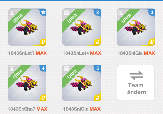 Full Team merged 1843 and zodiac Bonus. Best damage 165 Mio. LF any rotational PE Epic offer. Team Screen below.