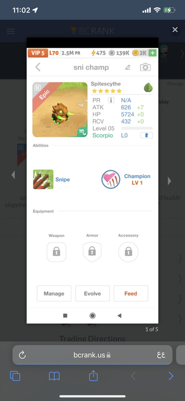 Ofertas sancty epic t1 en leo!!!!!!!! Continue with Facebook clear OR attach pictures Battle Camp Monster Trading Marketplace Trade Details ★★★ Diego Yañez Pets 1mo ago diegooandres30 L70 z1c4fy 81 4y ago Offer Accepted Diego Yañez Pets ★ ★ ★ Ironknight Snipe Cavalry · 3 M Waleed Turki ★ ★ ★ Ofertas sancty epic t1 en leo!!!!!!!! 28 comments ★★★ Nukri D. merged 2582 Magmasaur Crush Rogue · 3 MPE declined · 4y ago · translate ★★★ Nukri D. Heckromancer Snipe Lethal · 6 MPE declined · 4y ago ★★★ Nukri D. Nuclearwyvern Pound Rogue · 1 M declined · 4y ago ★★★ Nukri D. Lightninglion Lacerate Champion · 1 PE declined · 4y ago ★★★ Nukri D. 5:1 Hollyknight Sacrifice Shaman · 1 declined · 4y ago · translate ★★★ Aran T. Full merge team declined · 4y ago · translate ★★★ Seba Collins Boghound Snipe Shaman · 1 PE declined · 4y ago ★★★ Seba Collins 2:1 +150% trophies Siegebeast Blast Priest · 1 M declined · 4y ago · translate ★★★ Fatih Y. Up 4y ago · translate ★★★ Mubarak Ahmed Merged 2657 +3000% attack Psychosiren Crush Cavalry · 4 MPE declined · 4y ago · translate ★★★ Matthew Vargas Magmascourge Windbane+ Cavalry+ · 2 PEEQ312 declined · 4y ago ★★★ Matthew Vargas Ive got a few event epics/leggy Leo on my page 4y ago · translate ★★★ Oth A. declined · 4y ago ★★★ Oth A. 6:1 ? declined · 4y ago · translate ★★★ Tekin Erdem Erdem declined · 4y ago ★★★ Troy Blackwell declined · 4y ago ★★★ Troy Blackwell 3.1 +2100% attack Veloftiraptor Snipe Rogue · 1 PE declined · 4y ago · translate ★★★ Diego Yañez Pets Can you merge leo? 4y ago · translate ★★★ Fabio Veltri By 4y ago · translate ★★★ Waleed Turki declined · 4y ago ★★★ Diego Yañez Pets Psychosiren debe ser t1, pasiva caballeria 4y ago · translate ★★★ Waleed Turki ? 4y ago · translate ★★★ Waleed Turki ????? 4y ago · translate ★★★ Diego Yañez Pets Psychosiren cavalry no lethal please 4y ago · translate ★★★ Waleed Turki It's T1 high passive 4y ago · translate ★★★ Diego Yañez Pets Prefer cavalry and acept 4y ago · translate ★★★ Waleed Turki offer accepted · 4y ago ★★★ Waleed Turki Deal 4y ago · translate You must login to offer a trade. Related #battlecamp, #mobile, #mmo, #pvp PvP - Grapes1982 vs Echua8 Another awesome pair of leaf teams titans throw down, Grapes1982 and Echua8. Check out their intense side by side match. #battlecamp, #pvp, #team, #mobile, #mmo PvP - DShep420 vs Chanco21 - 2nd match Part Two of Dshep420 and Chanco21’s Rainbow Specials PvP. Observe how the balance of healing and hitting can make or break a heated battle. #battlecamp, #mobile, #mmo, #pvp Carlos Grapes vs mic1989 Watch PvP Warlord Carlos Grapes against a team of legendaries... what do you think will happen? ;) Check out Carlos's PvP Profile on Battle Camp Bible #battlecamp, #pvp, #team, #mobile, #mmo PvP - Dshep420 vs Chanco21 Two seasoned Rainbow PvPers slug it out in one of the preliminary rounds of the Rainbow Specials Tournament. Watch how each player make massive combos to knock each other out. #battlecamp, #pvp, #team, #mobile, #mmo PvP - Grapes vs. dev mythic team When all epic and legendary teams die in 10 sec, an ultra team showed some fight... #battlecamp, #pvp, #team, #mobile, #mmo PvP - Broyalty vs. MiaJane Watch Broyalty's wind team vs. MiaJane's rock team. Broyalty has a 1530 PvP rating with a 4:1 win to loss ratio! scroll to top