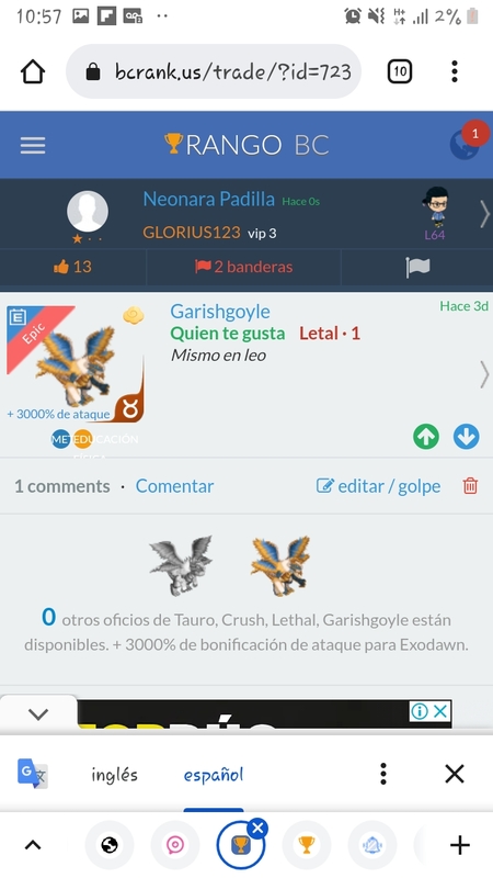 Good offers, i have 3 boon sagittarius....BR,WB,CS,DOM Continue with Facebook clear OR attach pictures Battle Camp Monster Trading Marketplace Trade Details ★★★ Jose Victo 1mo ago flajose L70 O único final feliz que conheço é o final de semana 667 3y ago Offer Accepted Jose Victo ★ ★ ★ Boonbird Lacerate Protector · 1 Dwi I. ★ ★ ★ Good offers, i have 3 boon sagittarius....BR,WB,CS,DOM 2:1 , 20 comments ★ · · Angel Ruiz Tengo un garishgoyle crusht1 y dos team uno de wb y otro de dom el de dom esta merge y con bonus de torre hoja cuanto da? 3y ago · translate ★★★ Jose Victo Cual és la oferta? 3y ago · translate ★ · · Angel Ruiz El que te interece mas 3y ago · translate ★ · · Angel Ruiz O los team o el épic 3y ago · translate ★ · · Angel Ruiz declined · 3y ago ★★ · Sandra Primeira Emberdrake Toxic Gladiator · 1 declined · 3y ago ★★★ Mo N. merge 2544 +3000% attack Psychosiren Snipe Champion · 4 MPE declined · 3y ago · translate ★★★ Lenny Muentes 2 boonbird declined · 3y ago · translate ★★★ Ahmad Nuha 5:3? declined · 3y ago · translate ★★★ Jose Victo no ty 3y ago · translate ★★ · Rocco Fatigante +150% trophies Siegebeast Toxic Knight · 1 M declined · 3y ago ★★ · Rocco Fatigante 2:1 Ultra can sevo for CT Surturion Venom Medic · 1 declined · 3y ago · translate ★★★ Jose Victo Add feeder siege and ok 3y ago · translate ★★★ Lenny Muentes declined · 3y ago ★★★ Lenny Muentes For 2 of them? 3y ago · translate ★★★ Jose Victo no worth 2 3y ago · translate ★★★ Lenny Muentes Want 2 of them, what I should add? 3y ago · translate ★★★ Jose Victo dont need ultra 3y ago · translate ★★★ Dwi I. 3y ago ★★★ Dwi I. 2:1 , offer accepted · 3y ago · translate You must login to offer a trade. Related #battlecamp, #mobile, #mmo, #pvp PvP - Grapes1982 vs Echua8 Another awesome pair of leaf teams titans throw down, Grapes1982 and Echua8. Check out their intense side by side match. #battlecamp, #pvp, #team, #mobile, #mmo PvP - DShep420 vs Chanco21 - 2nd match Part Two of Dshep420 and Chanco21’s Rainbow Specials PvP. Observe how the balance of healing and hitting can make or break a heated battle. #battlecamp, #mobile, #mmo, #pvp Carlos Grapes vs mic1989 Watch PvP Warlord Carlos Grapes against a team of legendaries... what do you think will happen? ;) Check out Carlos's PvP Profile on Battle Camp Bible #battlecamp, #pvp, #team, #mobile, #mmo PvP - Dshep420 vs Chanco21 Two seasoned Rainbow PvPers slug it out in one of the preliminary rounds of the Rainbow Specials Tournament. Watch how each player make massive combos to knock each other out. #battlecamp, #pvp, #team, #mobile, #mmo PvP - Grapes vs. dev mythic team When all epic and legendary teams die in 10 sec, an ultra team showed some fight... #battlecamp, #pvp, #team, #mobile, #mmo PvP - Broyalty vs. MiaJane Watch Broyalty's wind team vs. MiaJane's rock team. Broyalty has a 1530 PvP rating with a 4:1 win to loss ratio! scroll to top