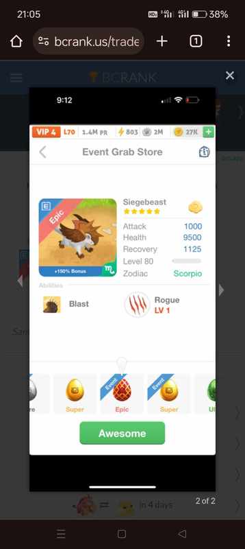 Merged 2943 attack.. lf siegedragon or 2 siegebeast Continue with Facebook clear OR attach pictures Battle Camp Monster Trading Marketplace Trade Details ★★★ SMoj M. 1m ago alimali2 vip 6 L70 VIRGO 335 1y ago Offer Accepted SMoj M. ★ ★ ★ Garishgoyle Snipe Cavalry · 10 +3000% attack MPE Brazerah BC ★ · · Ironknight Lacerate Cleric · 3 M Merged 2943 attack.. lf siegedragon or 2 siegebeast LF.. 6 comments ★★★ Huyên Nguyễn 1.1 declined · 1y ago · translate ★★★ Huyên Nguyễn 4 .1 + 3utra br declined · 1y ago · translate ★★★ Huyên Nguyễn +200% trophies Mechsprite Blast Rogue · 5 MPE declined · 1y ago ★★★ Huyên Nguyễn 4.1 Emberdrake Toxic Champion · 1 declined · 1y ago · translate ★★★ Huyên Nguyễn declined · 1y ago ★ · · Brazerah BC LF.. Ironknight Lacerate Cleric · 3 M offer accepted · 1y ago · translate You must login to offer a trade. Related #battlecamp, #mobile, #mmo, #pvp PvP - Grapes1982 vs Echua8 Another awesome pair of leaf teams titans throw down, Grapes1982 and Echua8. Check out their intense side by side match. #battlecamp, #pvp, #team, #mobile, #mmo PvP - DShep420 vs Chanco21 - 2nd match Part Two of Dshep420 and Chanco21’s Rainbow Specials PvP. Observe how the balance of healing and hitting can make or break a heated battle. #battlecamp, #mobile, #mmo, #pvp Carlos Grapes vs mic1989 Watch PvP Warlord Carlos Grapes against a team of legendaries... what do you think will happen? ;) Check out Carlos's PvP Profile on Battle Camp Bible #battlecamp, #pvp, #team, #mobile, #mmo PvP - Dshep420 vs Chanco21 Two seasoned Rainbow PvPers slug it out in one of the preliminary rounds of the Rainbow Specials Tournament. Watch how each player make massive combos to knock each other out. #battlecamp, #pvp, #team, #mobile, #mmo PvP - Grapes vs. dev mythic team When all epic and legendary teams die in 10 sec, an ultra team showed some fight... #battlecamp, #pvp, #team, #mobile, #mmo PvP - Broyalty vs. MiaJane Watch Broyalty's wind team vs. MiaJane's rock team. Broyalty has a 1530 PvP rating with a 4:1 win to loss ratio! scroll to top