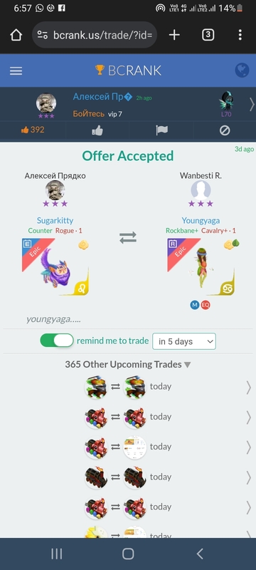 lf teenix emberfang igneosaur rainripper volkyrie or good offer Continue with Facebook clear OR attach pictures Battle Camp Monster Trading Marketplace Trade Details ★★★ Patorn O. 3w ago Kanakung L70 D-90 595 8mo ago Offer Accepted Patorn O. ★ ★ ★ Pawper Lacerate Lethal · 1 M Jose Morales ★ ★ ★ Nightyowler Lacerate Lethal · 1 lf teenix emberfang igneosaur rainripper volkyrie or good offer Ing retsacarolina 10 comments ★★★ Aditi Chaudhry Random epic with full boost for your 3 powpers. Only Mortuo Miasma+ Rogue+ · 1 MEQ999999 declined · 11mo ago · translate ★★★ Aditi Chaudhry 3 pawper for my 1 full boost .. 11mo ago · translate ★★★ Aditi Chaudhry Thanks for fast reply. I was knew that 11mo ago · translate ★★★ Tôn Đạt Aristocat Venom Priest · 1 M declined · 10mo ago ★★★ Tôn Đạt +900% attack Flizard Snipe Champion · 1 M declined · 10mo ago ★★★ Tôn Đạt 2:1 10mo ago · translate ★★★ Wanbesti R. declined · 10mo ago ★★★ T-Bob T. Halfheart Sacrifice Rogue · 1 declined · 10mo ago ★ · · Arturo Aguilar I can max it declined · 9mo ago · translate ★★★ Jose Morales Ing retsacarolina Nightyowler Lacerate Lethal · 1 offer accepted · 8mo ago · translate You must login to offer a trade. Related #battlecamp, #mobile, #mmo, #pvp PvP - Grapes1982 vs Echua8 Another awesome pair of leaf teams titans throw down, Grapes1982 and Echua8. Check out their intense side by side match. #battlecamp, #pvp, #team, #mobile, #mmo PvP - DShep420 vs Chanco21 - 2nd match Part Two of Dshep420 and Chanco21’s Rainbow Specials PvP. Observe how the balance of healing and hitting can make or break a heated battle. #battlecamp, #mobile, #mmo, #pvp Carlos Grapes vs mic1989 Watch PvP Warlord Carlos Grapes against a team of legendaries... what do you think will happen? ;) Check out Carlos's PvP Profile on Battle Camp Bible #battlecamp, #pvp, #team, #mobile, #mmo PvP - Dshep420 vs Chanco21 Two seasoned Rainbow PvPers slug it out in one of the preliminary rounds of the Rainbow Specials Tournament. Watch how each player make massive combos to knock each other out. #battlecamp, #pvp, #team, #mobile, #mmo PvP - Grapes vs. dev mythic team When all epic and legendary teams die in 10 sec, an ultra team showed some fight... #battlecamp, #pvp, #team, #mobile, #mmo PvP - Broyalty vs. MiaJane Watch Broyalty's wind team vs. MiaJane's rock team. Broyalty has a 1530 PvP rating with a 4:1 win to loss ratio! scroll to top