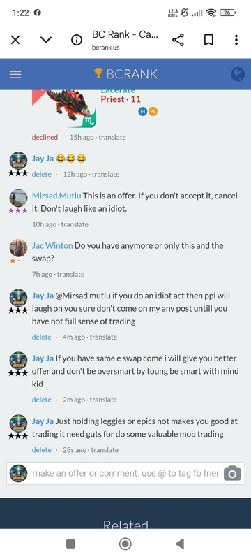Lf leo yetiko or skeledeer Continue with Facebook clear OR attach pictures Battle Camp Monster Trading Marketplace Trade Details ★★★ Mirsad Mutlu 5h ago mirsolinho vip 6 L70 247 4mo ago Offer Accepted Mirsad Mutlu ★ ★ ★ Yetiko Snipe+ Cavalry+ · 1 EQ 러비 구. ★ ★ ★ Lf leo yetiko or skeledeer 7 comments ★★★ Jay Ja 9mo ago ★★★ Roberto Vimercati Pe for pe Reshekandr Snipe+ Cavalry+ · 1 PEEQ declined · 7mo ago · translate ★★★ Lukirk B. declined · 7mo ago ★★★ Lukirk B. I don't have a lion but if you could change my sign I would be grateful 7mo ago · translate ★★★ Mirsad Mutlu What can u add 7mo ago · translate ★★★ Lukirk B. It seems to me that the pet is of equal value 7mo ago · translate ★★★ 러비 구. offer accepted · 4mo ago You must login to offer a trade. Related #battlecamp, #mobile, #mmo, #pvp PvP - Grapes1982 vs Echua8 Another awesome pair of leaf teams titans throw down, Grapes1982 and Echua8. Check out their intense side by side match. #battlecamp, #pvp, #team, #mobile, #mmo PvP - DShep420 vs Chanco21 - 2nd match Part Two of Dshep420 and Chanco21’s Rainbow Specials PvP. Observe how the balance of healing and hitting can make or break a heated battle. #battlecamp, #mobile, #mmo, #pvp Carlos Grapes vs mic1989 Watch PvP Warlord Carlos Grapes against a team of legendaries... what do you think will happen? ;) Check out Carlos's PvP Profile on Battle Camp Bible #battlecamp, #pvp, #team, #mobile, #mmo PvP - Dshep420 vs Chanco21 Two seasoned Rainbow PvPers slug it out in one of the preliminary rounds of the Rainbow Specials Tournament. Watch how each player make massive combos to knock each other out. #battlecamp, #pvp, #team, #mobile, #mmo PvP - Grapes vs. dev mythic team When all epic and legendary teams die in 10 sec, an ultra team showed some fight... #battlecamp, #pvp, #team, #mobile, #mmo PvP - Broyalty vs. MiaJane Watch Broyalty's wind team vs. MiaJane's rock team. Broyalty has a 1530 PvP rating with a 4:1 win to loss ratio! scroll to top