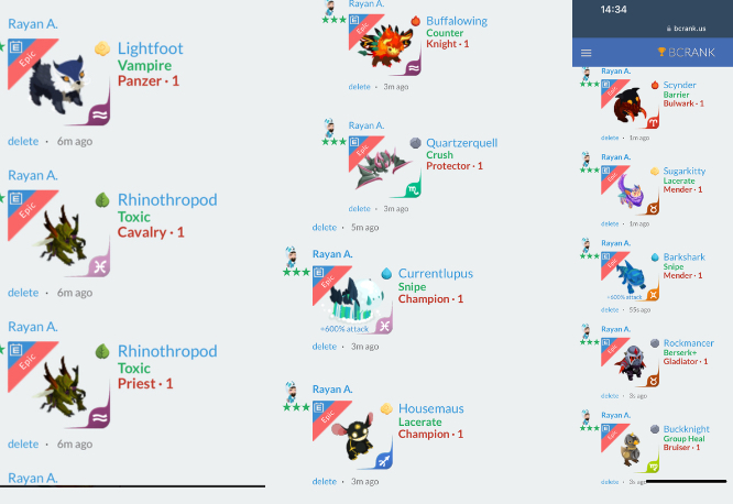Ofertas pisces Continue with Facebook clear OR attach pictures Battle Camp Monster Trading Marketplace Trade Details ★ · · Tito P. 13h ago venomcs125 vip 3 L59 hola 24 6mo ago Offer Accepted Tito P. ★ · · GrayShade Group Heal Lethal · 1 Lim Hopply ★ ★ ★ Softsting Lacerate Champion · 1 MPE Ofertas pisces 12 comments ★★★ Rayan A. Rockmancer Berserk+ Medic · 1 declined · 7mo ago ★★★ Trần Tiến HarrahBash Toxic+ Rogue+ · 1 MEQ declined · 7mo ago ★★★ Dan Nad Fryger Snipe Mender · 1 M declined · 7mo ago ★★★ Darian B. Foeburner E-Swap Priest · 1 declined · 7mo ago ★★★ Rayan A. You can choose any 1:1 declined · 7mo ago · translate ★★★ Darian B. +2100% attack Indigordo Snipe Medic · 1 MPE declined · 7mo ago ★★★ Cristian Caboni Creagle Pound Champion · 1 declined · 7mo ago ★★★ Alexandre S. Freezycrawler Wound Lethal · 1 6mo ago ★★★ Alexandre S. +900% attack Leazard Snipe Protector · 1 6mo ago ★★★ Alexandre S. Sunbear Counter+ Panzer+ · 1 EQ 6mo ago ★★★ Alexandre S. 2:1 choose them 6mo ago · translate ★★★ Lim Hopply Softsting Lacerate Champion · 1 MPE offer accepted · 6mo ago You must login to offer a trade. Related #battlecamp, #mobile, #mmo, #pvp PvP - Grapes1982 vs Echua8 Another awesome pair of leaf teams titans throw down, Grapes1982 and Echua8. Check out their intense side by side match. #battlecamp, #pvp, #team, #mobile, #mmo PvP - DShep420 vs Chanco21 - 2nd match Part Two of Dshep420 and Chanco21’s Rainbow Specials PvP. Observe how the balance of healing and hitting can make or break a heated battle. #battlecamp, #mobile, #mmo, #pvp Carlos Grapes vs mic1989 Watch PvP Warlord Carlos Grapes against a team of legendaries... what do you think will happen? ;) Check out Carlos's PvP Profile on Battle Camp Bible #battlecamp, #pvp, #team, #mobile, #mmo PvP - Dshep420 vs Chanco21 Two seasoned Rainbow PvPers slug it out in one of the preliminary rounds of the Rainbow Specials Tournament. Watch how each player make massive combos to knock each other out. #battlecamp, #pvp, #team, #mobile, #mmo PvP - Grapes vs. dev mythic team When all epic and legendary teams die in 10 sec, an ultra team showed some fight... #battlecamp, #pvp, #team, #mobile, #mmo PvP - Broyalty vs. MiaJane Watch Broyalty's wind team vs. MiaJane's rock team. Broyalty has a 1530 PvP rating with a 4:1 win to loss ratio! scroll to top