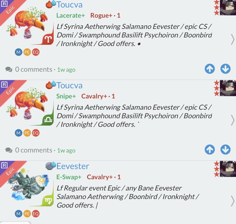 MPEEQLeechera2w agoE-Swap+Cavalry+ · 1Lf Regular event Epic / Salamano / Eevester / Bonesplasher / Same in Gemini / Good offers. ` -