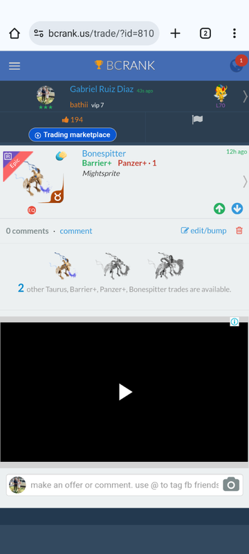 Mightsprite Continue with Facebook clear OR attach pictures Battle Camp Monster Trading Marketplace Trade Details ★★★ Gabriel Ruiz Diaz 34m ago bathii vip 7 L70 atado a vos 205 2mo ago Offer Accepted Gabriel Ruiz Diaz ★ ★ ★ Bonespitter Snipe+ Cavalry+ · 1 EQ Foxsu F. ★ ★ ★ Mechsprite Blast Rogue · 1 +200% trophies MPE Mightsprite for + feeder 4 comments ★★★ Foxsu F. for + feeder? +200% trophies Mechsprite Blast Champion · 1 MPE declined · 2mo ago · translate ★★★ Gabriel Ruiz Diaz Blast - Cav/Rog 2mo ago · translate ★★★ Foxsu F. for + feeder +200% trophies Mechsprite Blast Rogue · 1 MPE offer accepted · 2mo ago · translate ★★★ Gabriel Ruiz Diaz Bones to max bro (2:1) 2mo ago · translate You must login to offer a trade. Related #battlecamp, #mobile, #mmo, #pvp PvP - Grapes1982 vs Echua8 Another awesome pair of leaf teams titans throw down, Grapes1982 and Echua8. Check out their intense side by side match. #battlecamp, #pvp, #team, #mobile, #mmo PvP - DShep420 vs Chanco21 - 2nd match Part Two of Dshep420 and Chanco21’s Rainbow Specials PvP. Observe how the balance of healing and hitting can make or break a heated battle. #battlecamp, #mobile, #mmo, #pvp Carlos Grapes vs mic1989 Watch PvP Warlord Carlos Grapes against a team of legendaries... what do you think will happen? ;) Check out Carlos's PvP Profile on Battle Camp Bible #battlecamp, #pvp, #team, #mobile, #mmo PvP - Dshep420 vs Chanco21 Two seasoned Rainbow PvPers slug it out in one of the preliminary rounds of the Rainbow Specials Tournament. Watch how each player make massive combos to knock each other out. #battlecamp, #pvp, #team, #mobile, #mmo PvP - Grapes vs. dev mythic team When all epic and legendary teams die in 10 sec, an ultra team showed some fight... #battlecamp, #pvp, #team, #mobile, #mmo PvP - Broyalty vs. MiaJane Watch Broyalty's wind team vs. MiaJane's rock team. Broyalty has a 1530 PvP rating with a 4:1 win to loss ratio! scroll to top