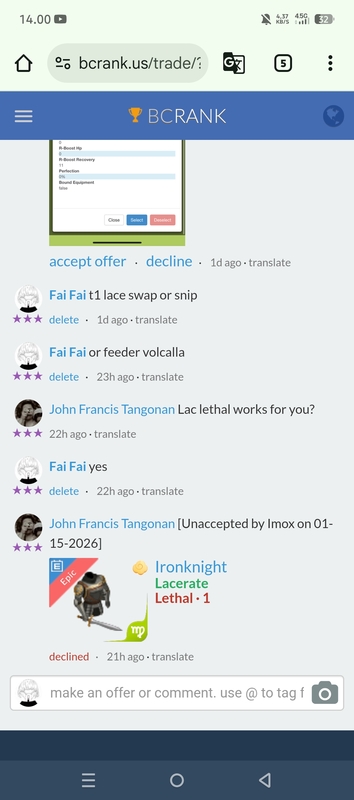 Looking for best offer volks Continue with Facebook clear OR attach pictures Battle Camp Monster Trading Marketplace Trade Details ★★★ Pim van Rooij 1d ago powpim vip 5 L70 🥳 93 2w ago Offer Accepted Pim van Rooij ★ ★ ★ Typhi Waterbane+ Cavalry+ · 1 EQ Fai Fai ★ ★ ★ Looking for best offer volks How about this, are you interested? 2 : 1 4 comments ★★★ Fai Fai [Unaccepted by titot22 on 01-15-2026] Ironknight Lacerate Lethal · 1 declined · 2w ago · translate ★★★ Fai Fai Sorry bro, someone unaccept the trade 2w ago · translate ★★★ Fai Fai How about this, are you interested? 2 : 1 offer accepted · 2w ago · translate ★★★ Pim van Rooij Aa okr yeah i will accept 💪🏻 2w ago · translate You must login to offer a trade. Related #battlecamp, #mobile, #mmo, #pvp PvP - Grapes1982 vs Echua8 Another awesome pair of leaf teams titans throw down, Grapes1982 and Echua8. Check out their intense side by side match. #battlecamp, #pvp, #team, #mobile, #mmo PvP - DShep420 vs Chanco21 - 2nd match Part Two of Dshep420 and Chanco21’s Rainbow Specials PvP. Observe how the balance of healing and hitting can make or break a heated battle. #battlecamp, #mobile, #mmo, #pvp Carlos Grapes vs mic1989 Watch PvP Warlord Carlos Grapes against a team of legendaries... what do you think will happen? ;) Check out Carlos's PvP Profile on Battle Camp Bible #battlecamp, #pvp, #team, #mobile, #mmo PvP - Dshep420 vs Chanco21 Two seasoned Rainbow PvPers slug it out in one of the preliminary rounds of the Rainbow Specials Tournament. Watch how each player make massive combos to knock each other out. #battlecamp, #pvp, #team, #mobile, #mmo PvP - Grapes vs. dev mythic team When all epic and legendary teams die in 10 sec, an ultra team showed some fight... #battlecamp, #pvp, #team, #mobile, #mmo PvP - Broyalty vs. MiaJane Watch Broyalty's wind team vs. MiaJane's rock team. Broyalty has a 1530 PvP rating with a 4:1 win to loss ratio! scroll to top