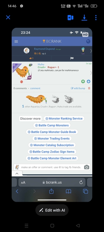 M2969 | LF any niuhuhu pe and max Continue with Facebook clear OR attach pictures Battle Camp Monster Trading Marketplace Trade Details ★★★ Abdulmajeed S. 10h ago Sumvcs12345 vip 3 L70 4vf7c1 141 3w ago Offer Accepted Abdulmajeed S. ★ ★ ★ Psychosiren Crush Champion · 9 +3000% attack MPE Huyên Văn ★ ★ ★ M2969 | LF any niuhuhu pe and max 17 comments ★★★ Huyên Văn I will pe and max you can add 1 food merging ? 3w ago · translate ★★★ Huyên Văn I can pe 2 niuhuhu 3w ago · translate ★★★ Abdulmajeed S. I’m not adding any merge food, the deal is fair as it is 3w ago · translate ★★★ Huyên Văn Ok i will pe 2 huhu for 2 wb your 3w ago · translate ★★★ Huyên Văn Pls add friend NMADDZ To trade 3w ago · translate ★★★ Huyên Văn 3w ago ★★★ Huyên Văn 3w ago ★★★ Huyên Văn I can add 1 food merging for 2 wb 3w ago · translate ★★★ Huyên Văn Salamano Snipe+ Cavalry+ · 1 MPE 3w ago ★★★ Abdulmajeed S. Someone already offered for the second wb epic, only one left which is garish 3w ago · translate ★★★ Abdulmajeed S. offer 1:1 and i’ll accept niuhuhu for garish 3w ago · translate ★★★ Huyên Văn Pls trade 2 wb for me 3w ago · translate ★★★ Abdulmajeed S. Sorry i meant only psychoiren left 3w ago · translate ★★★ Abdulmajeed S. if u add another 3100+ epic so 2 niuhuhu + 2 epic 3100+ i will unaccept the trade with that guy 3w ago · translate ★★★ Huyên Văn offer accepted · 3w ago ★★★ Huyên Văn Add friend NMADDZ to trade 3w ago · translate ★★★ Abdulmajeed S. Ok 1 psychoiren and 1 garish for 2 niuhuhu + 2 epics 3w ago · translate You must login to offer a trade. Related #battlecamp, #mobile, #mmo, #pvp PvP - Grapes1982 vs Echua8 Another awesome pair of leaf teams titans throw down, Grapes1982 and Echua8. Check out their intense side by side match. #battlecamp, #pvp, #team, #mobile, #mmo PvP - DShep420 vs Chanco21 - 2nd match Part Two of Dshep420 and Chanco21’s Rainbow Specials PvP. Observe how the balance of healing and hitting can make or break a heated battle. #battlecamp, #mobile, #mmo, #pvp Carlos Grapes vs mic1989 Watch PvP Warlord Carlos Grapes against a team of legendaries... what do you think will happen? ;) Check out Carlos's PvP Profile on Battle Camp Bible #battlecamp, #pvp, #team, #mobile, #mmo PvP - Dshep420 vs Chanco21 Two seasoned Rainbow PvPers slug it out in one of the preliminary rounds of the Rainbow Specials Tournament. Watch how each player make massive combos to knock each other out. #battlecamp, #pvp, #team, #mobile, #mmo PvP - Grapes vs. dev mythic team When all epic and legendary teams die in 10 sec, an ultra team showed some fight... #battlecamp, #pvp, #team, #mobile, #mmo PvP - Broyalty vs. MiaJane Watch Broyalty's wind team vs. MiaJane's rock team. Broyalty has a 1530 PvP rating with a 4:1 win to loss ratio! scroll to top