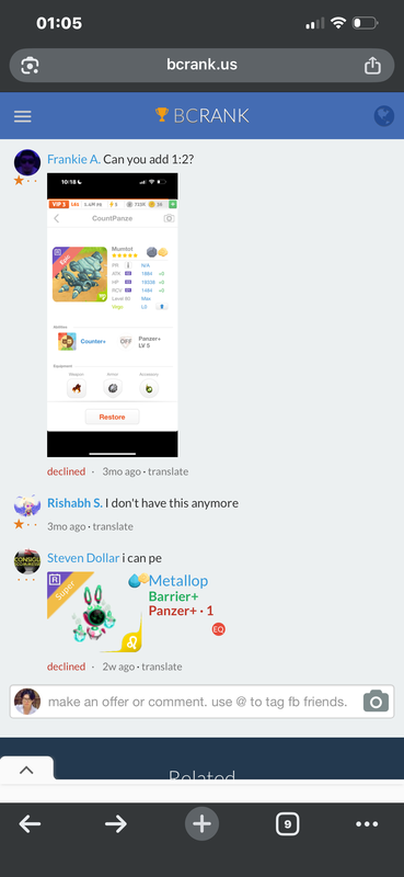 good event offert or festiwing lacerate+ or Bane sagittarius Continue with Facebook clear OR attach pictures Battle Camp Monster Trading Marketplace Trade Details ★ · · Steven Dollar 4h ago sddtt vip 3 L70 0zfacz 16 Monosaur Snipe Bruiser · 1 good event offert or festiwing lacerate+ or Bane sagittarius 3d ago 1 comment 0 other Gemini, Snipe, Bruiser, Monosaur trades are available. · · · Adam Trump I need it, have you? 1w ago · translate You must login to offer a trade. Related #battlecamp, #mobile, #mmo, #pvp PvP - Grapes1982 vs Echua8 Another awesome pair of leaf teams titans throw down, Grapes1982 and Echua8. Check out their intense side by side match. #battlecamp, #pvp, #team, #mobile, #mmo PvP - DShep420 vs Chanco21 - 2nd match Part Two of Dshep420 and Chanco21’s Rainbow Specials PvP. Observe how the balance of healing and hitting can make or break a heated battle. #battlecamp, #mobile, #mmo, #pvp Carlos Grapes vs mic1989 Watch PvP Warlord Carlos Grapes against a team of legendaries... what do you think will happen? ;) Check out Carlos's PvP Profile on Battle Camp Bible #battlecamp, #pvp, #team, #mobile, #mmo PvP - Dshep420 vs Chanco21 Two seasoned Rainbow PvPers slug it out in one of the preliminary rounds of the Rainbow Specials Tournament. Watch how each player make massive combos to knock each other out. #battlecamp, #pvp, #team, #mobile, #mmo PvP - Grapes vs. dev mythic team When all epic and legendary teams die in 10 sec, an ultra team showed some fight... #battlecamp, #pvp, #team, #mobile, #mmo PvP - Broyalty vs. MiaJane Watch Broyalty's wind team vs. MiaJane's rock team. Broyalty has a 1530 PvP rating with a 4:1 win to loss ratio! scroll to top