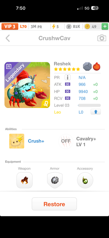 MReshek4d agoCrush+Cavalry+ · 1crush wind lf mahimanesca -