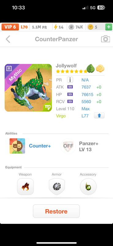 MPEEQ999999Jollywolf5d agoCounter+Panzer+ · 13Looking for best offers. Prefer Virgo windbane+ mythic in rock/leaf. Can come with PE max feeder for the best offer -